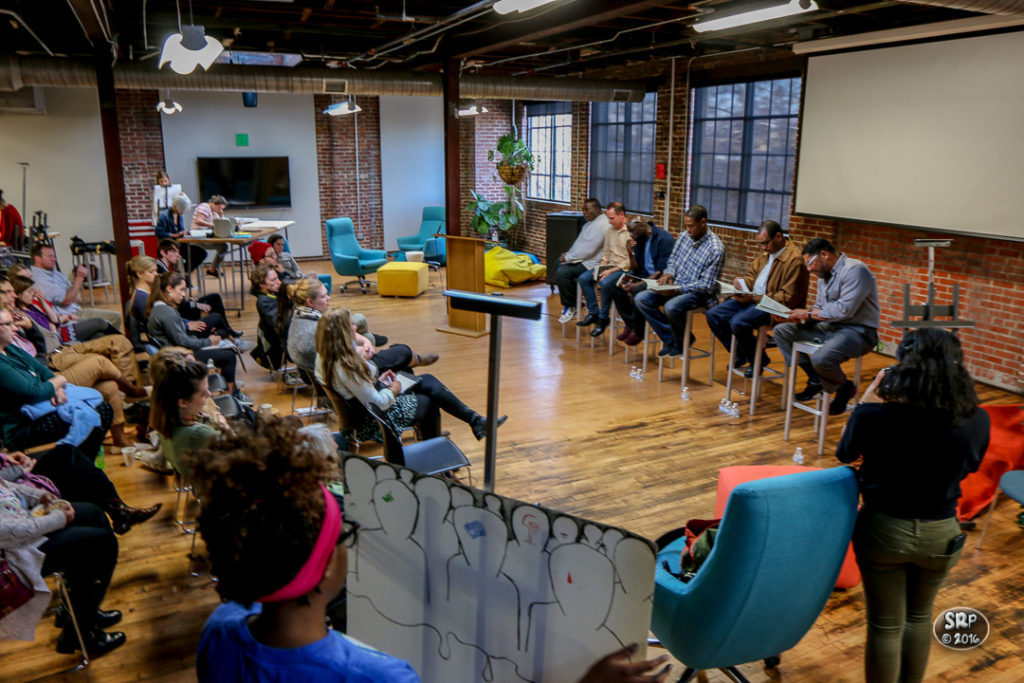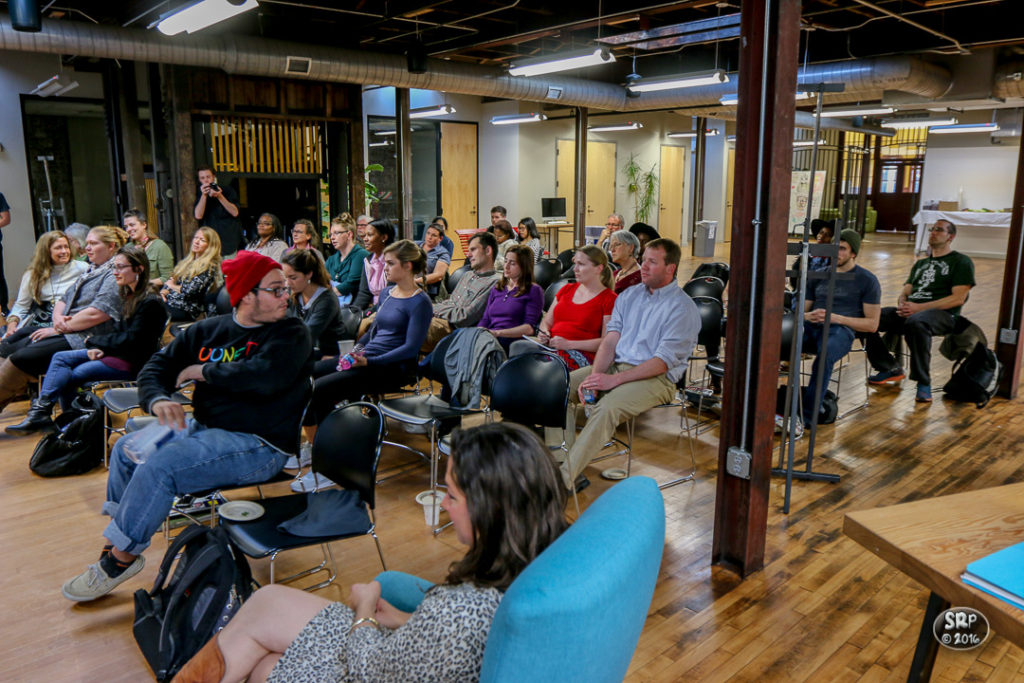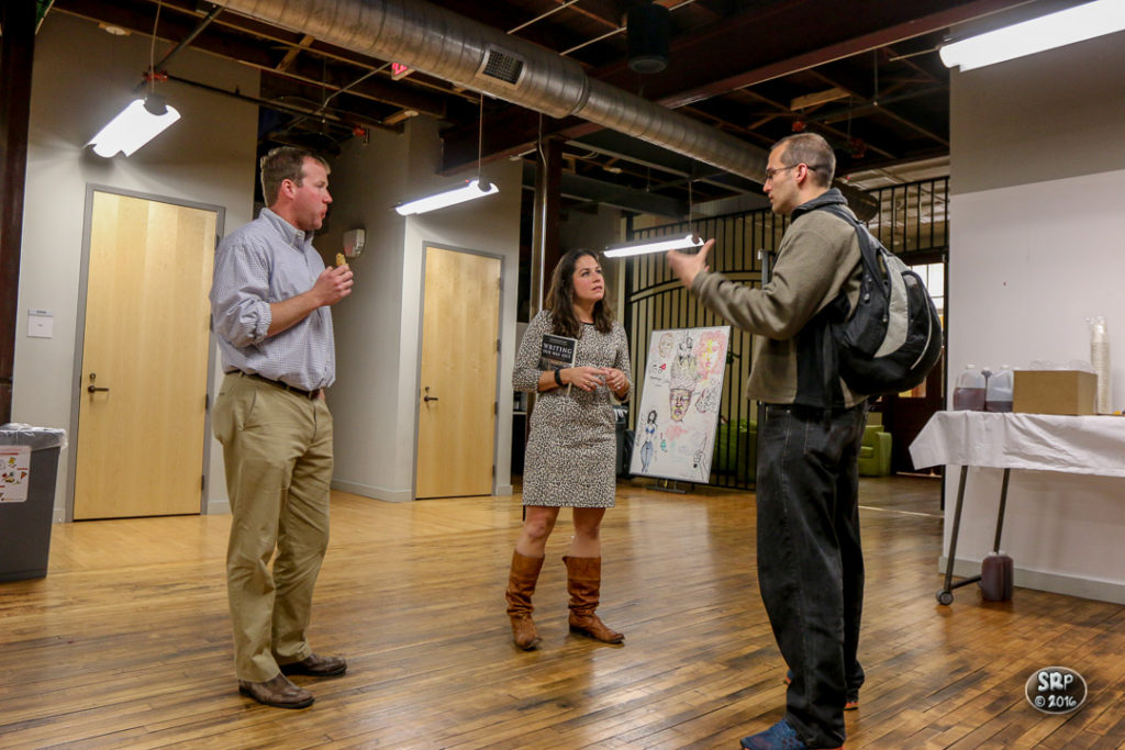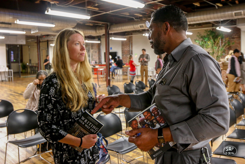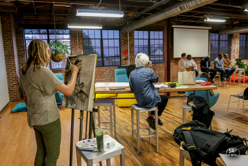 Wednesday evening, April 13, 2016, the VCU School of the Arts hosted an Open Studio with the authors of Writing Our Way Out. Attendees were offered the opportunity to artistically express their reactions to the readings, then participate in a pop up exhibition afterwards. Through their stories of humor, grief, and hope, told with brutal honesty, the readers connected with their audience, creating a sense of a shared reality. (Skip Rowland)