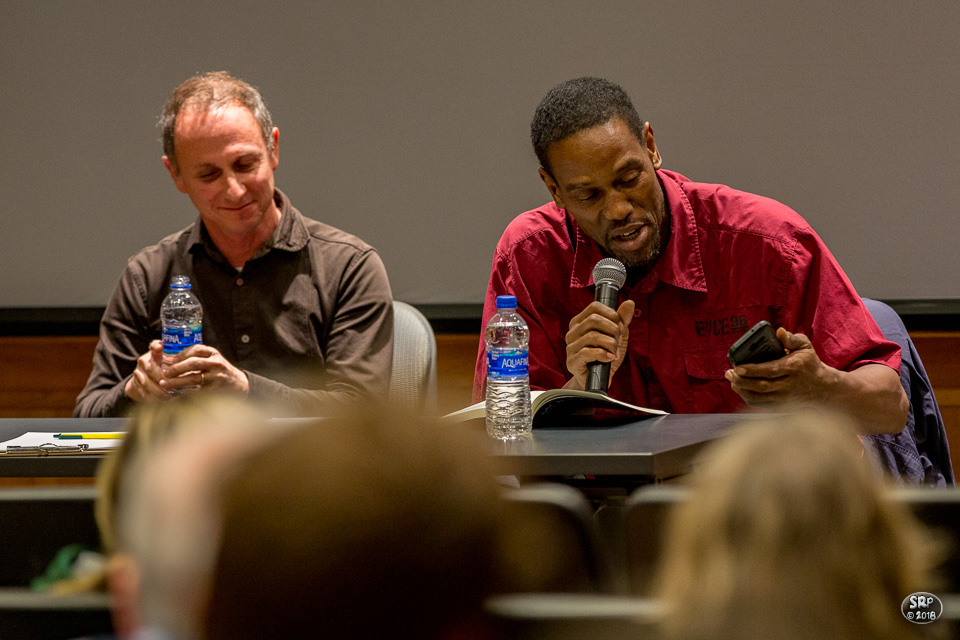 Authors Dave Coogan and Kelvin Belton came to William & Mary to present their book Writing Our Way Out: Memoirs from Jail as part of the English Department’s Patrick Hayes Lecture Series. Their readings offered a brutally honest view of the reality of mass incarceration and working within a prison population. The talk was followed by an equally insightful Q&A. (Skip Rowland)