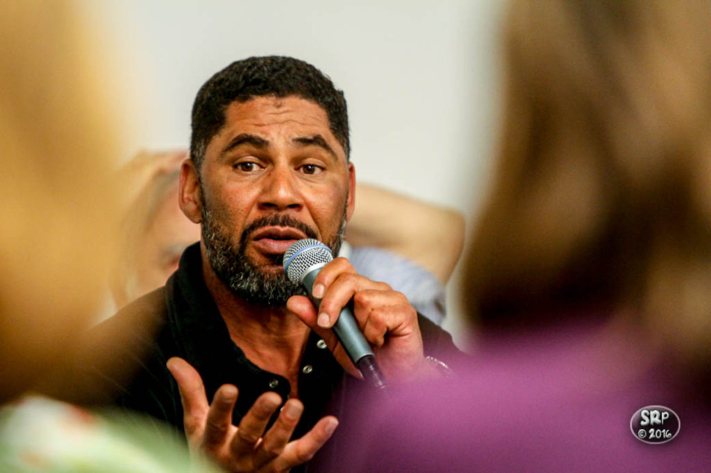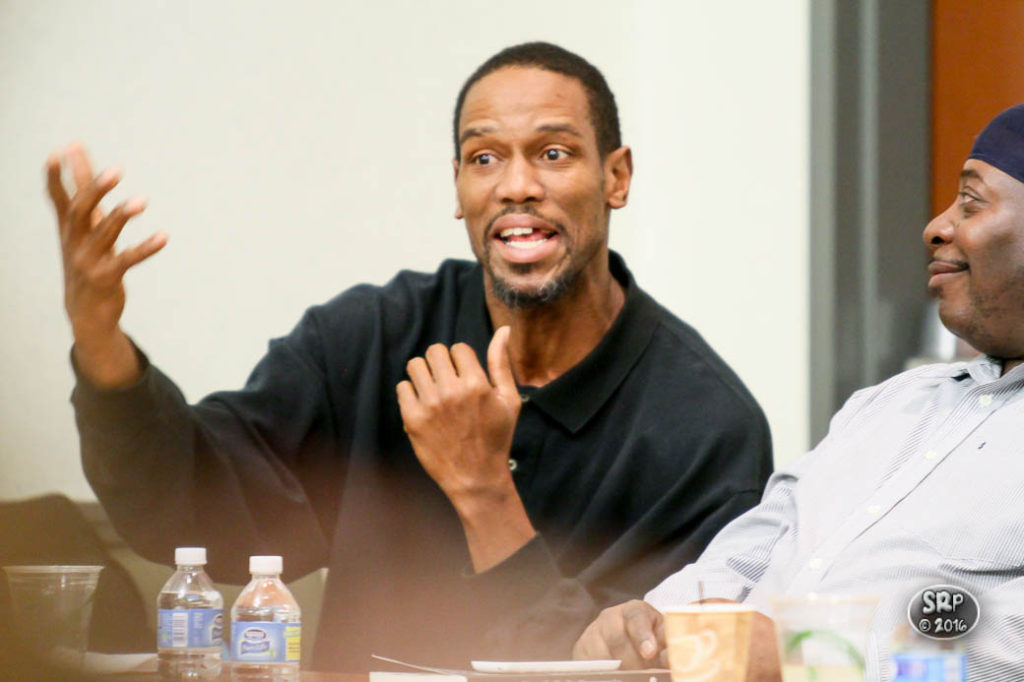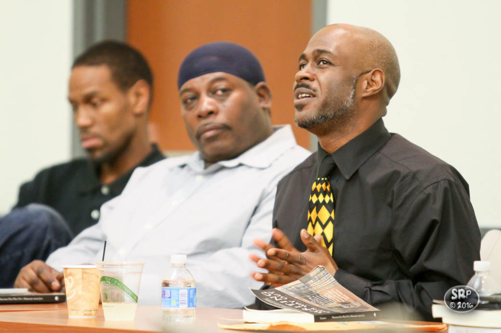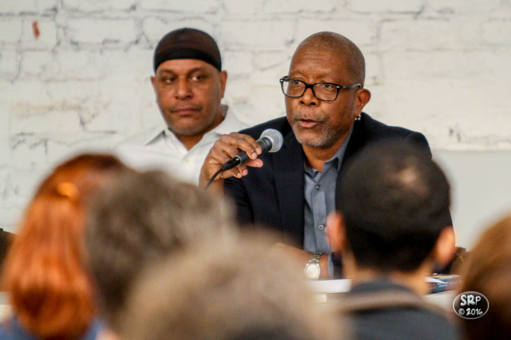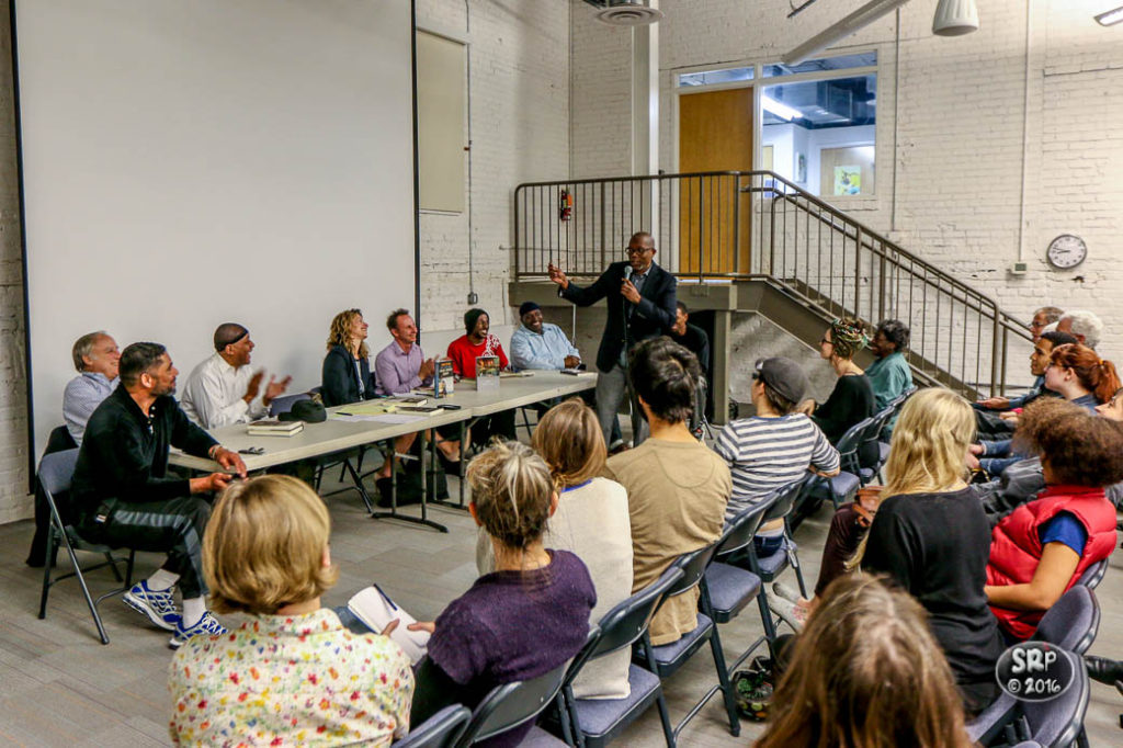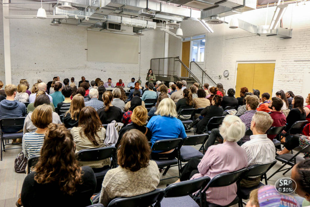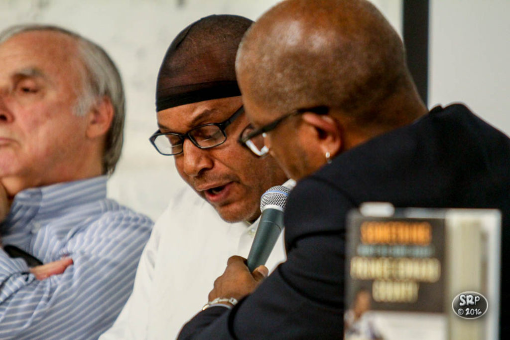 Chop Suey Books sponsored a reading and panel discussion on the topic “Schools & Jails in the Long Shadow of Slavery”. Moderated by RT-D columnist Michael Paul Williams, writers Ben Campbell and Kristen Green talked about their respective books Richmond’s Unhealed History and Something Must Be Done About Prince Edward County, while David Coogan introduced Writing Our Way Out contributors Terence Scruggs, Stanley Craddock, Naji Mujahid and Kelvin Belton to read and discuss their experiences. The full-house event was hosted by the Visual Arts Center of Richmond on Tuesday evening, March 15, 2016. (Skip Rowland)